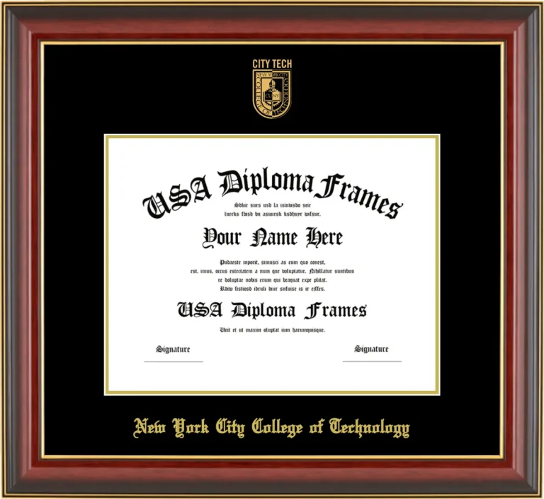 Want to explore more styles? Browse our full range of diploma frame layouts, or visit the New York City College of Technology to view options available for your school. Looking for a fully personalized design? Try our custom Frame Builder and create a frame that’s uniquely yours.