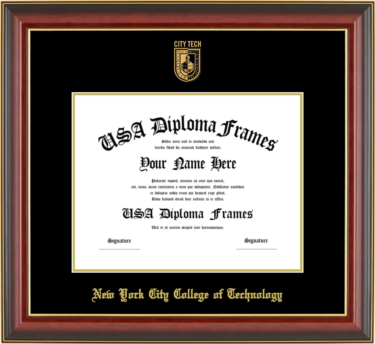 New York City College of Technology – Single Horizontal Document ( Bachelors ) – Cherry Mahogany Gold Trim Glossy – Black Mat – Gold Accent Mat – With Seal(University Seal Gold) – With Gold Embossing (New York City College of Technology)