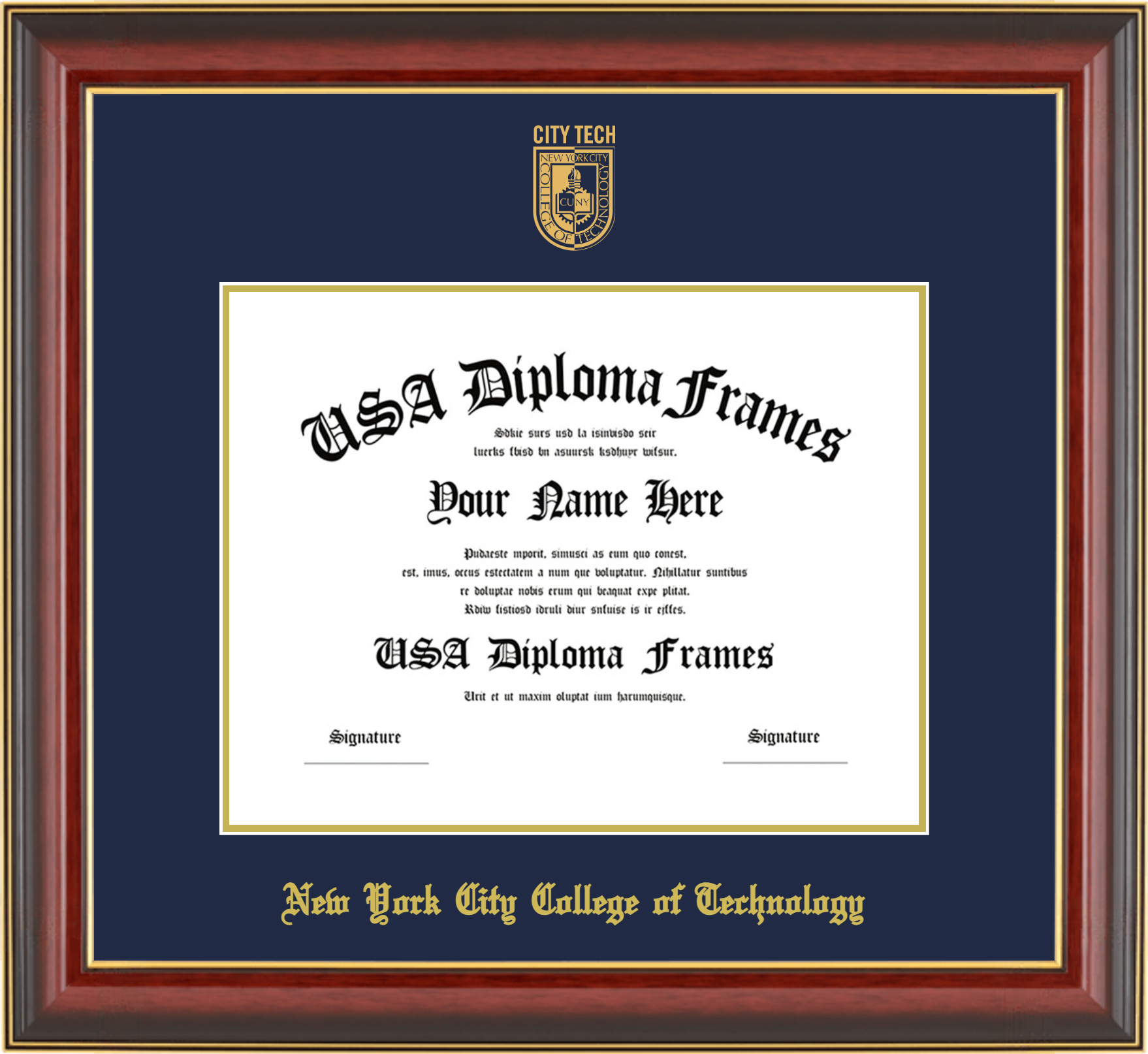 New York City College of Technology – Single Horizontal Document ( Bachelors ) – Cherry Mahogany Gold Trim Glossy – Navy Mat – Gold Accent Mat – With Seal(University Seal Gold) – With Gold Embossing (New York City College of Technology)