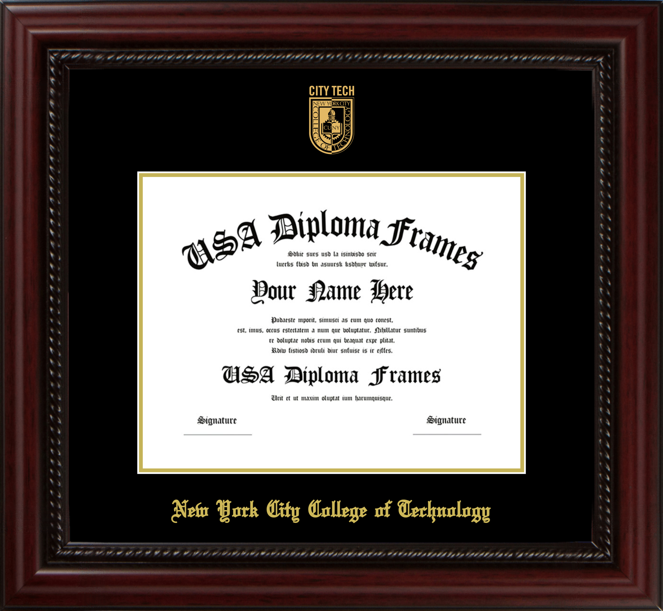 New York City College of Technology Diploma Frame – Executive Cherry Rope – Black and Gold Mat