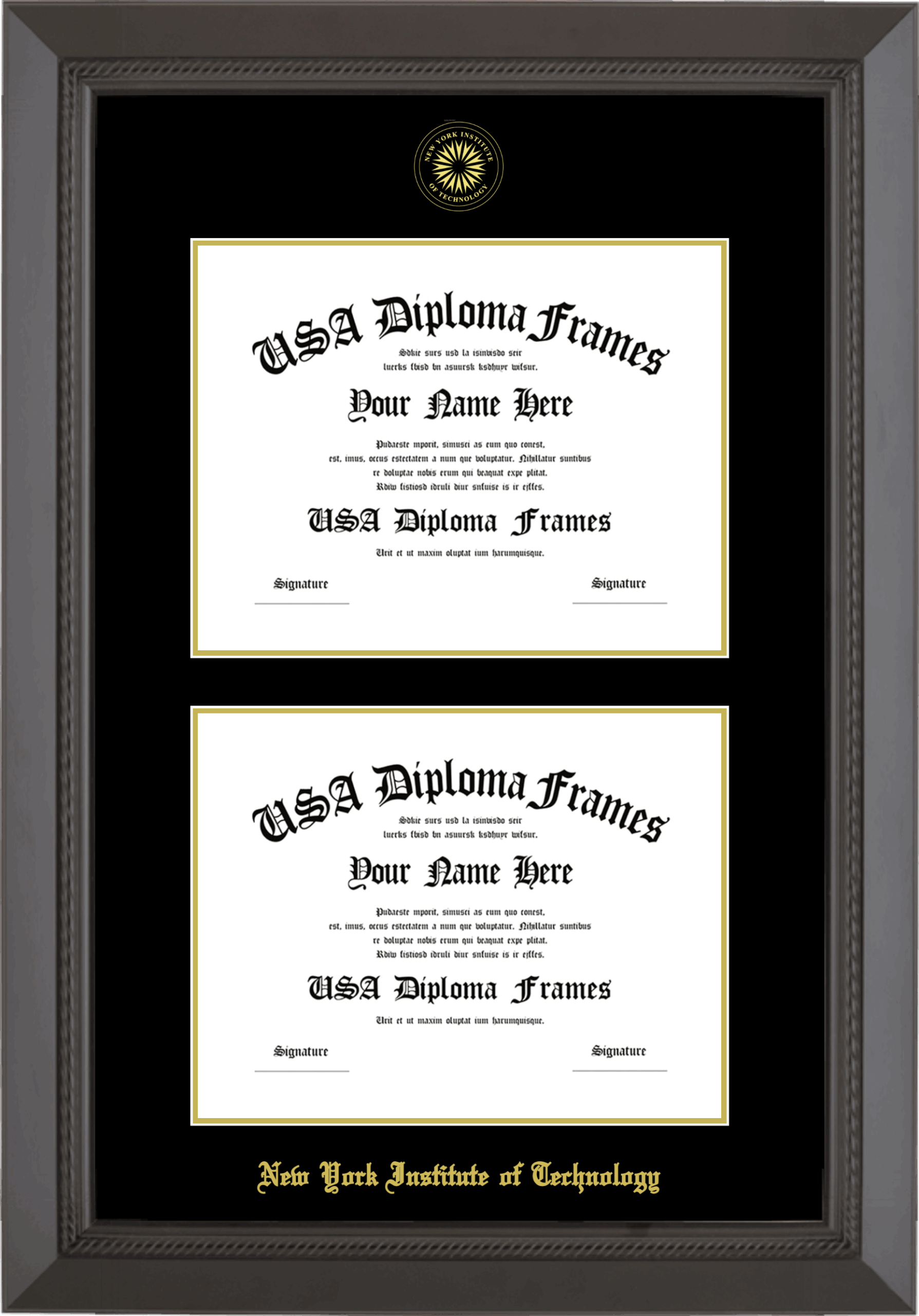 New York Institute of Technology Double Diploma Frame – Double Document – Black Rope – Black and Gold Mat
