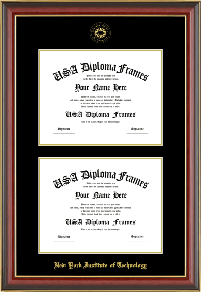 New York Institute of Technology Double Diploma Frame – Double Document – Cherry Mahogany Gold Trim Glossy – Black and Gold Mat