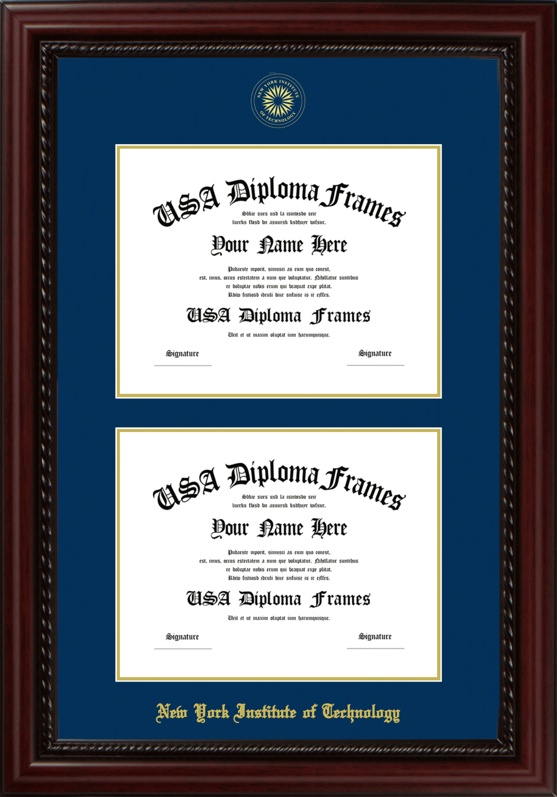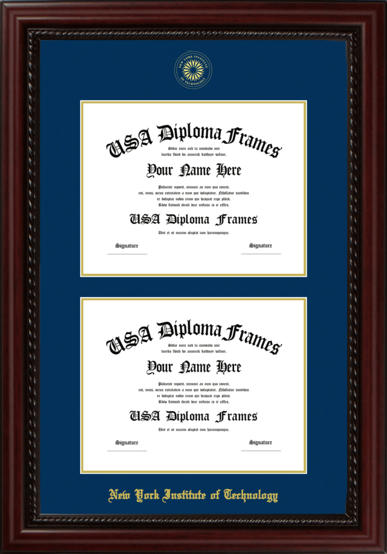 New York Institute of Technology Double Diploma Frame – Double Document – Executive Cherry Rope – Navy and Gold Mat