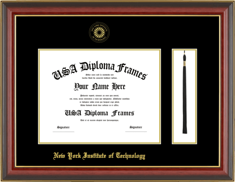 New York Institute of Technology Diploma Frame with Tassel – Cherry Mahogany Gold Trim Glossy – Black and Gold Mat