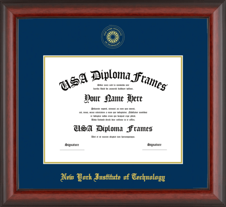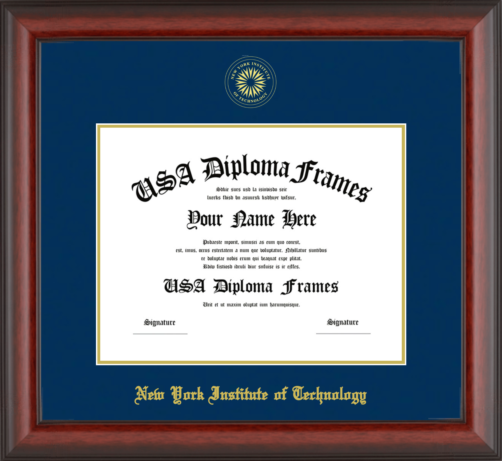 New York Institute of Technology Diploma Frame – Cherry Mahogany Matte – Navy and Gold Mat