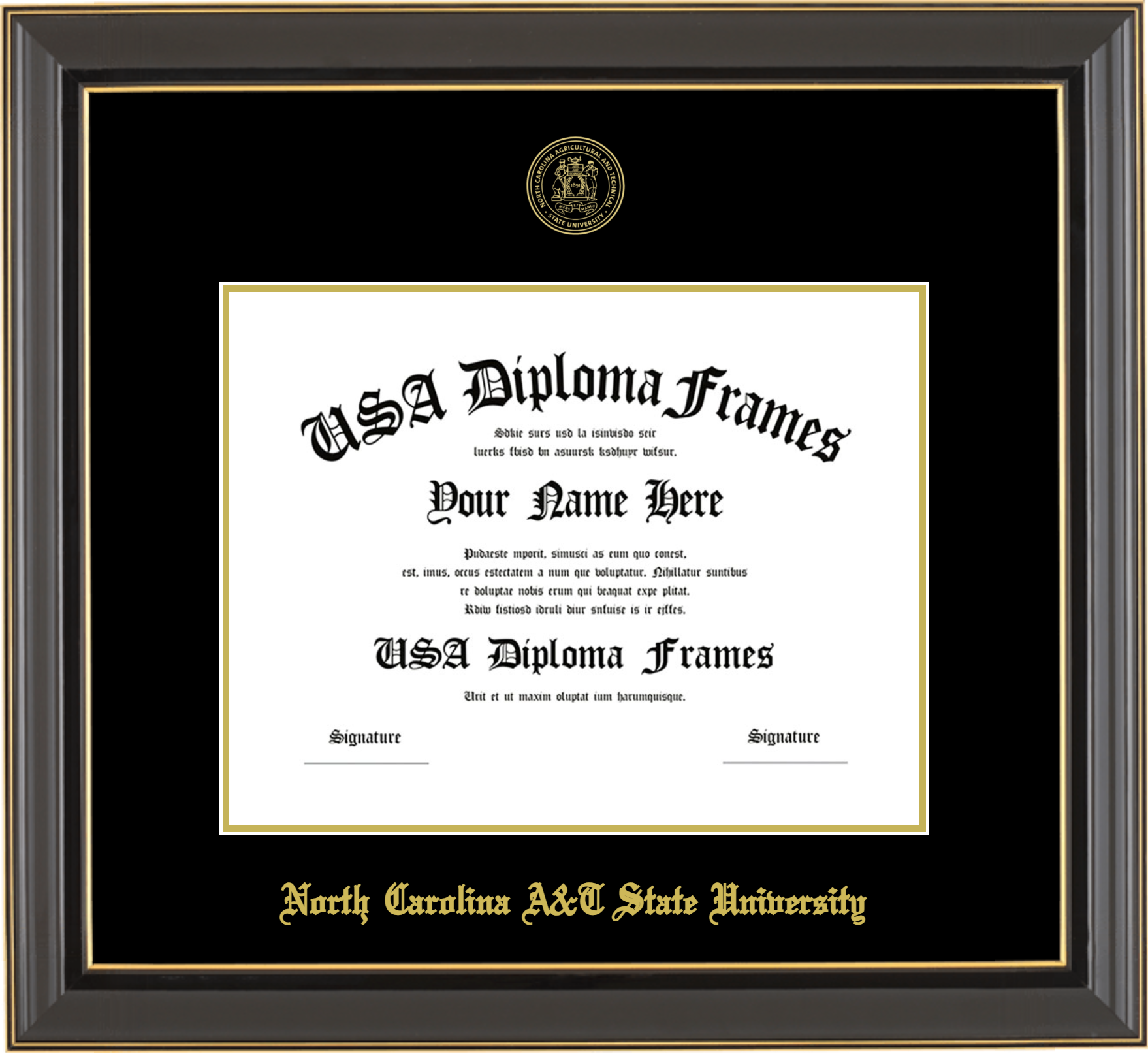 North Carolina Agricultural and Technical State University – Single Horizontal Document ( 8 1/2″x11″ ) – Black Gold Trim Glossy – Black Mat – Gold Accent Mat – With Seal(University Seal Gold) – With Gold Embossing (North Carolina A&T State University)
