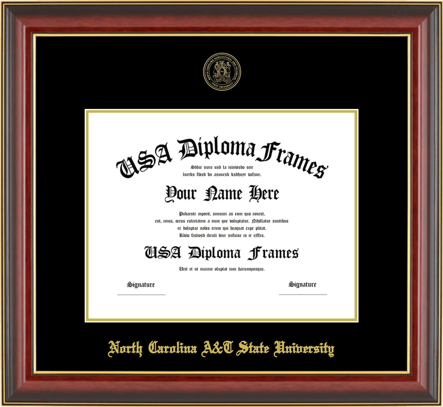 North Carolina Agricultural and Technical State University – Single Horizontal Document ( 8 1/2″x11″ ) – Cherry Mahogany Gold Trim Glossy – Black Mat – Gold Accent Mat – With Seal(University Seal Gold) – With Gold Embossing (North Carolina A&T State University)