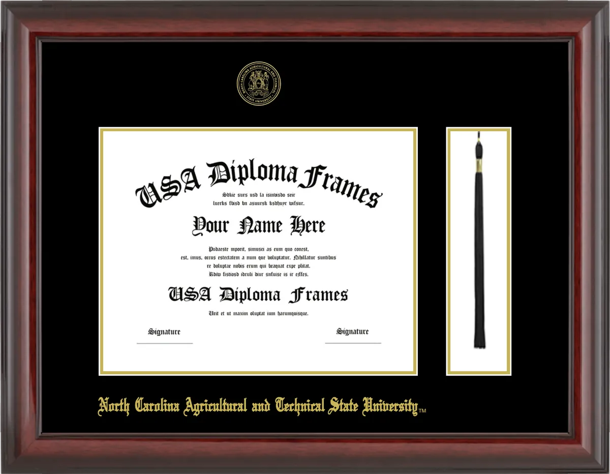 North Carolina Agricultural and Technical State University – Single Horizontal Document ( Diploma ) – Cherry Mahogany Glossy – Black Mat – Gold Accent Mat – With Tassel(Default) – With Seal(University Seal Gold) – With Gold Embossing (North Carolina Agricultural and Technical State University)
