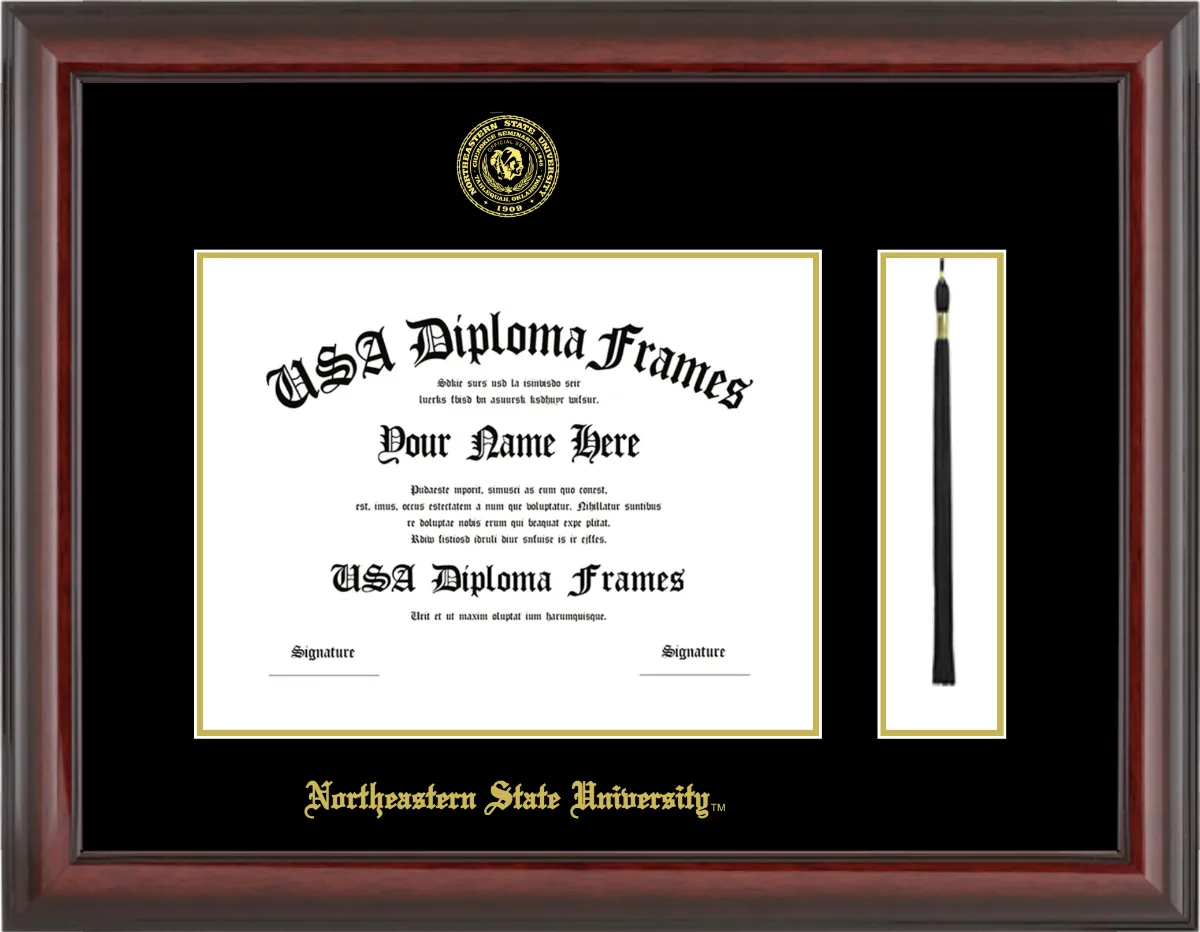 Northeastern State University Diploma Frame with Tassel – Cherry Mahogany Glossy – Black and Gold Mat