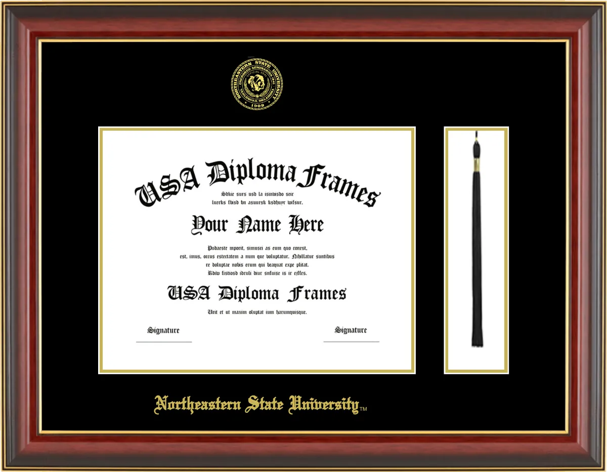 Northeastern State University Diploma Frame with Tassel – Cherry Mahogany Gold Trim Glossy – Black and Gold Mat