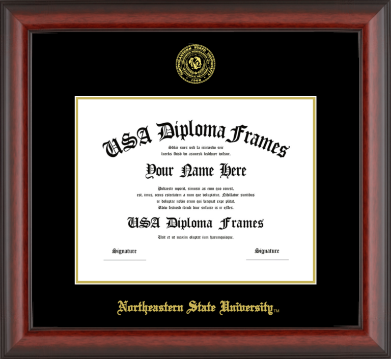 Northeastern State University Diploma Frame – Cherry Mahogany Matte – Black and Gold Mat