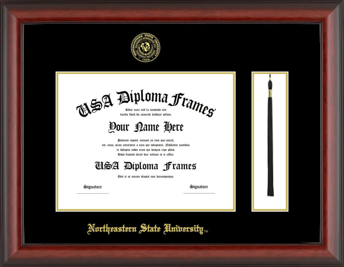 Northeastern State University Diploma Frame with Tassel – Cherry Mahogany Matte – Black and Gold Mat