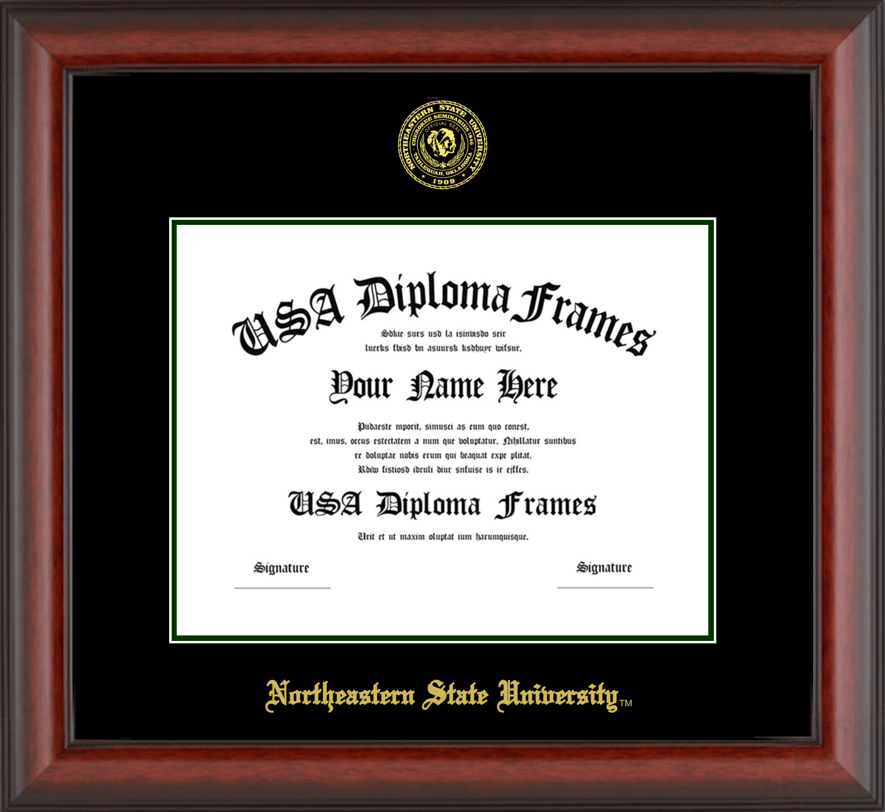 Northeastern State University – Single Horizontal Document ( Bachelors ) – Cherry Mahogany Matte – Black Mat – Winter Green Accent Mat – With Seal(University Seal Gold) – With Gold Embossing (Northeastern State University)