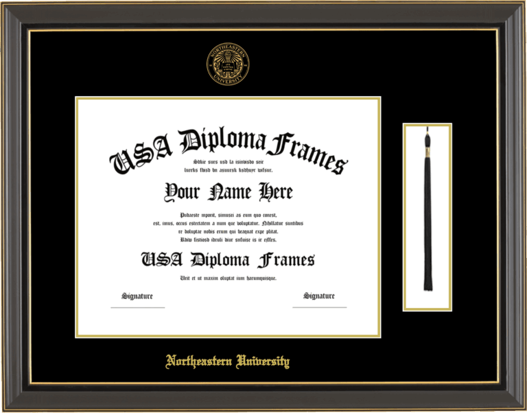 Northeastern University Diploma Frame with Tassel – Black Gold Trim Glossy – Black and Gold Mat