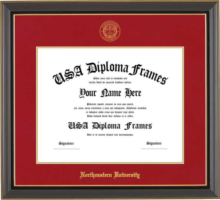 Want to explore more styles? Browse our full range of diploma frame layouts, or visit the Northeastern University to view options available for your school. Looking for a fully personalized design? Try our custom Frame Builder and create a frame that’s uniquely yours.