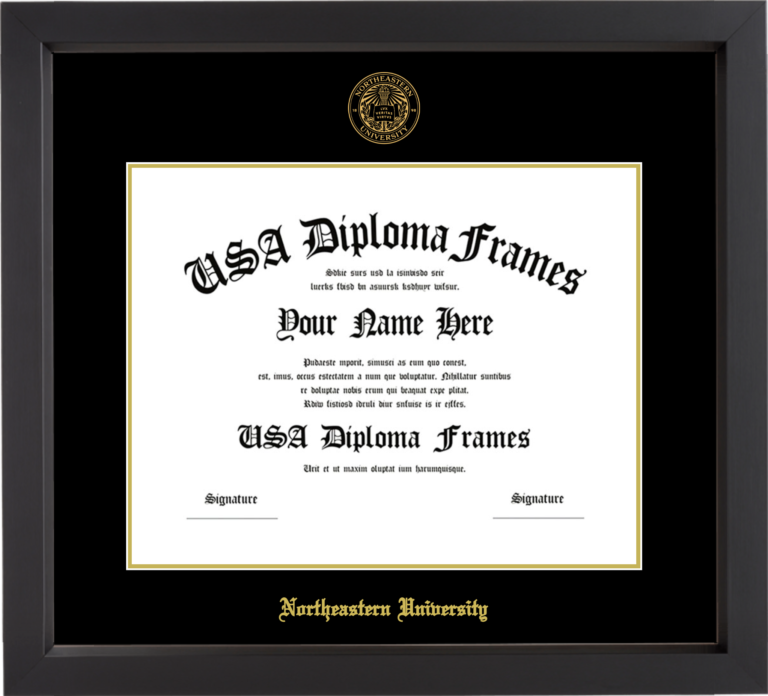 Northeastern University Diploma Frame – Black Matte – Black and Gold Mat
