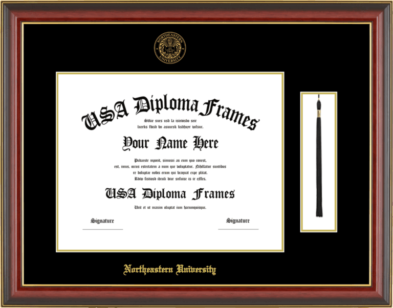 Northeastern University Diploma Frame with Tassel – Cherry Mahogany Gold Trim Glossy – Black and Gold Mat