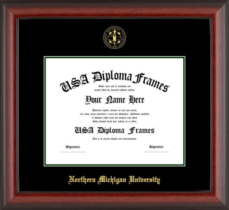 Want to explore more styles? Browse our full range of diploma frame layouts, or visit the Northern Michigan University to view options available for your school. Looking for a fully personalized design? Try our custom Frame Builder and create a frame that’s uniquely yours.