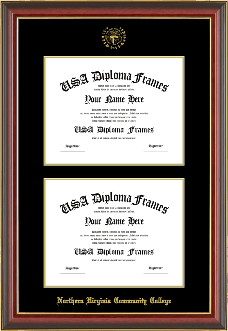 Northern Virginia Community College Double Diploma Frame – Double Document – Cherry Mahogany Gold Trim Glossy – Black and Gold Mat