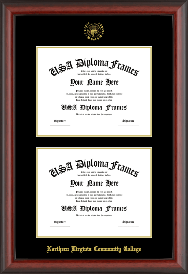 Northern Virginia Community College Double Diploma Frame – Double Document – Cherry Mahogany Matte – Black and Gold Mat