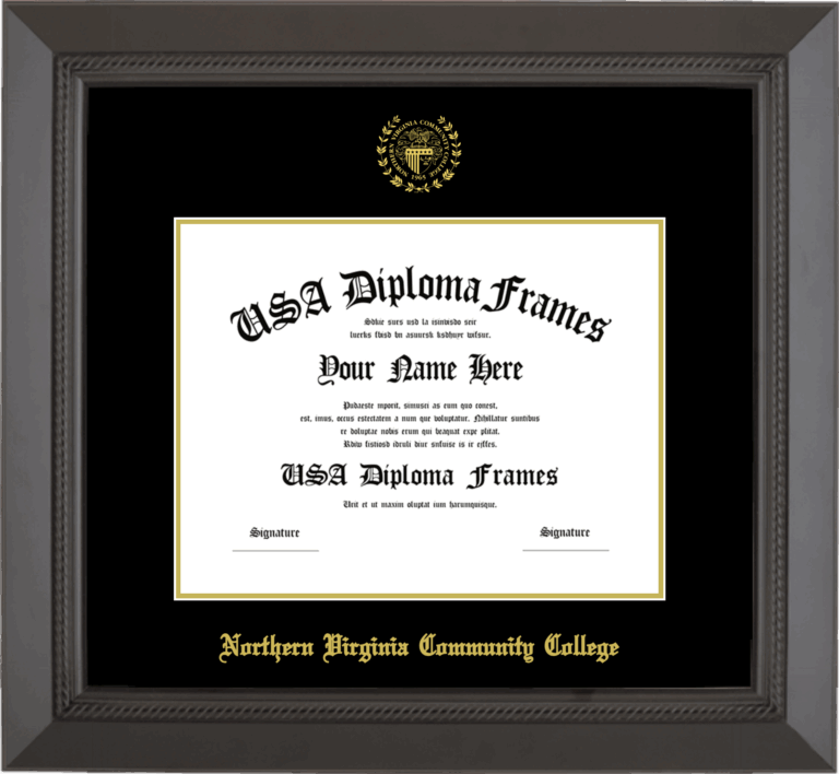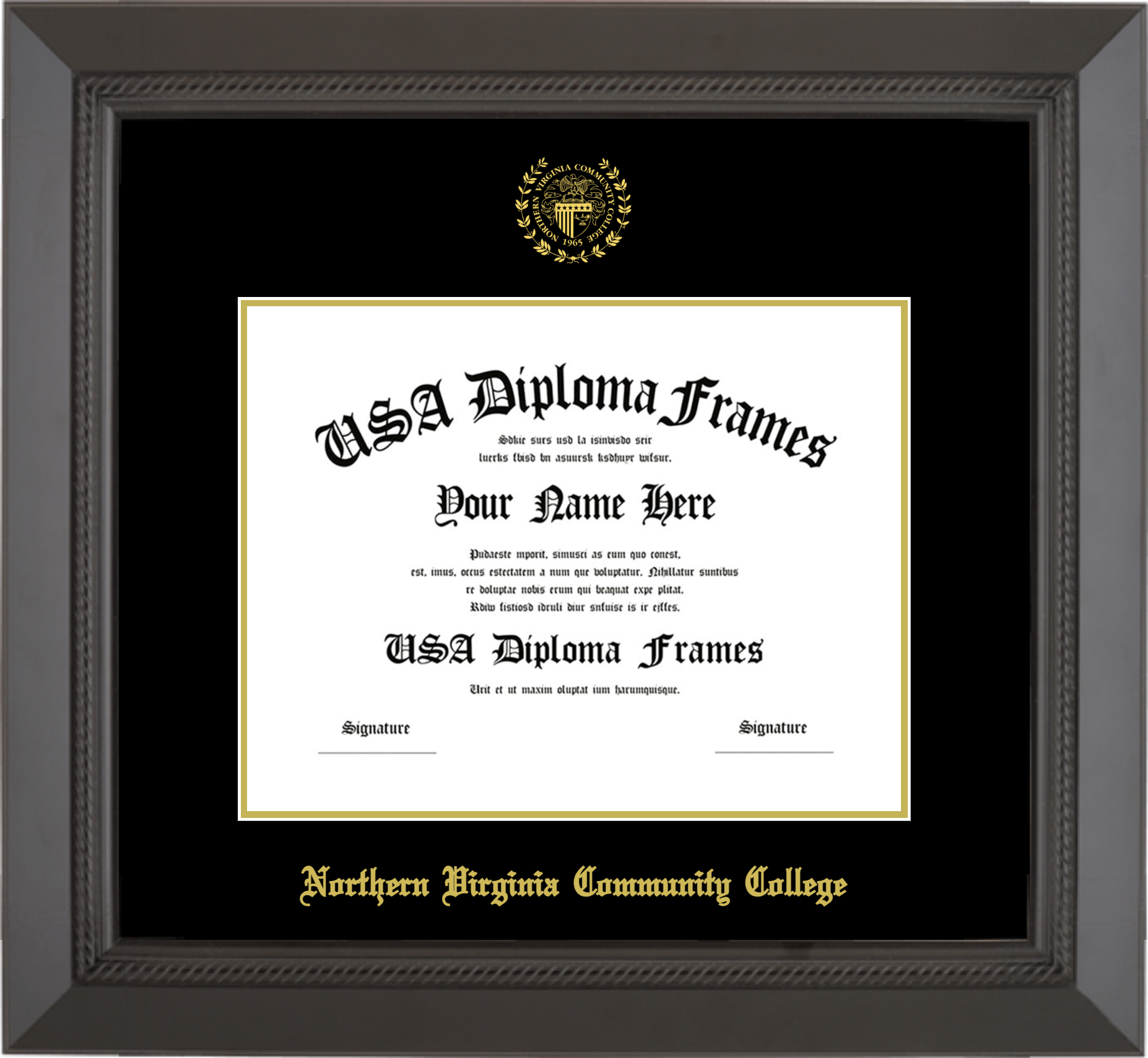 Northern Virginia Community College Diploma Frame – Black Rope – Black and Gold Mat