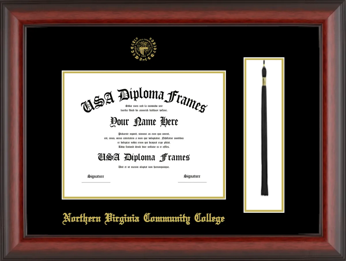 Northern Virginia Community College Diploma Frame with Tassel – Cherry Mahogany Matte – Black and Gold Mat