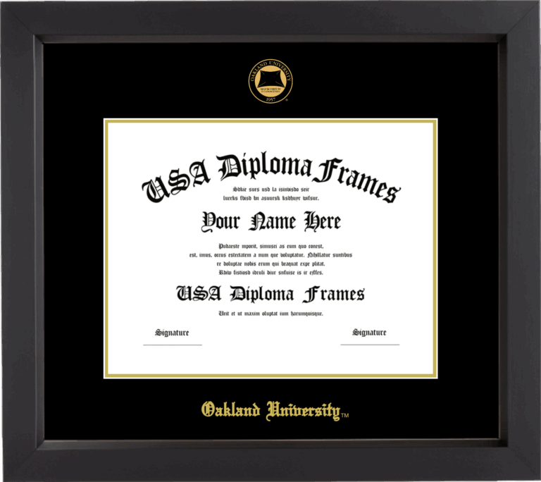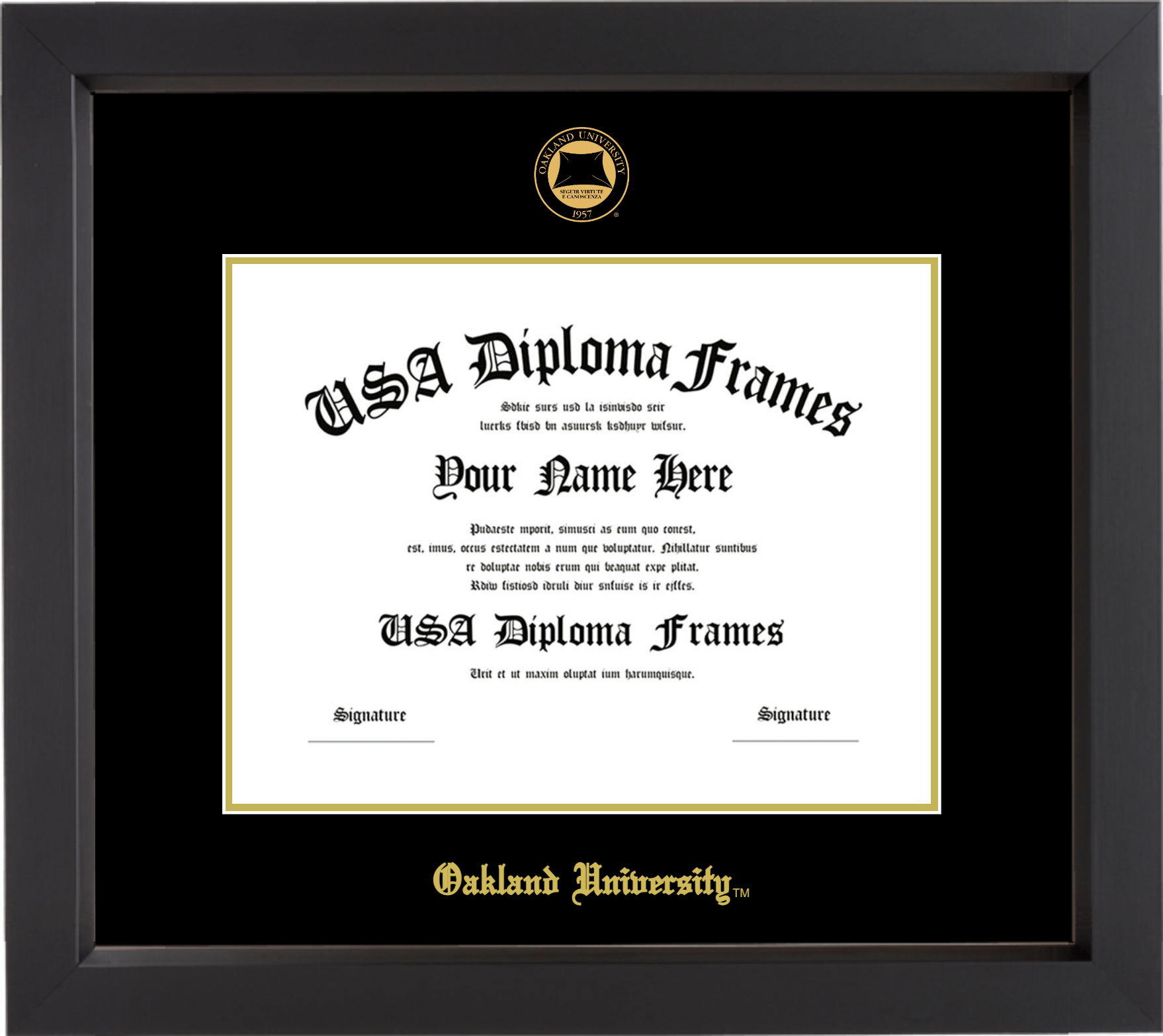 Oakland University Diploma Frame – Black Matte – Black and Gold Mat
