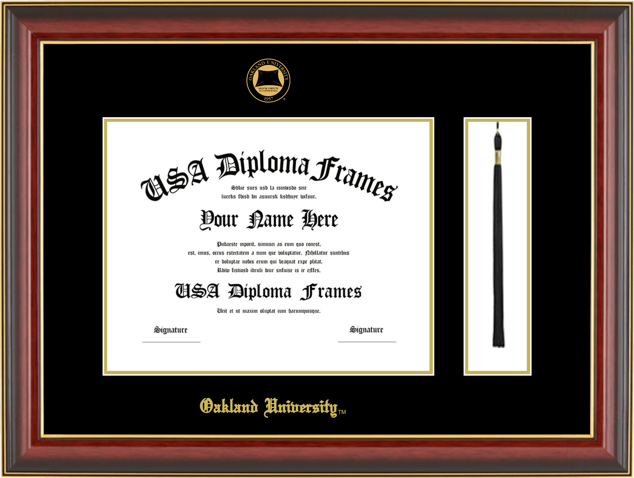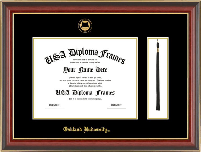 Oakland University Diploma Frame with Tassel – Cherry Mahogany Gold Trim Glossy – Black and Gold Mat