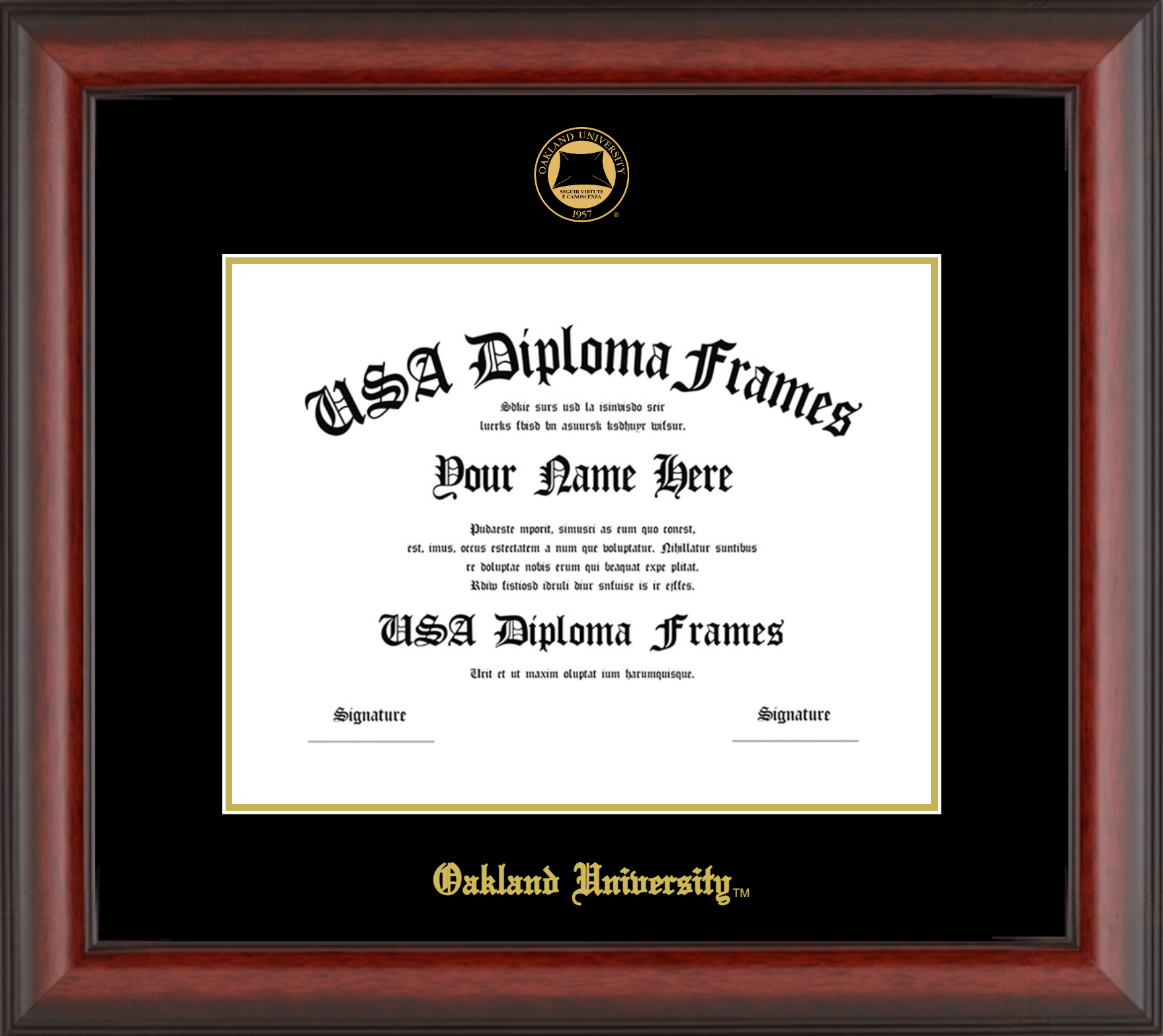 Oakland University Diploma Frame – Cherry Mahogany Matte – Black and Gold Mat