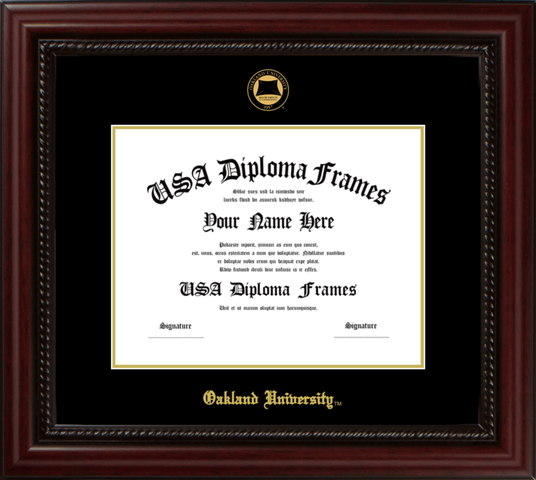 Oakland University Diploma Frame – Executive Cherry Rope – Black and Gold Mat