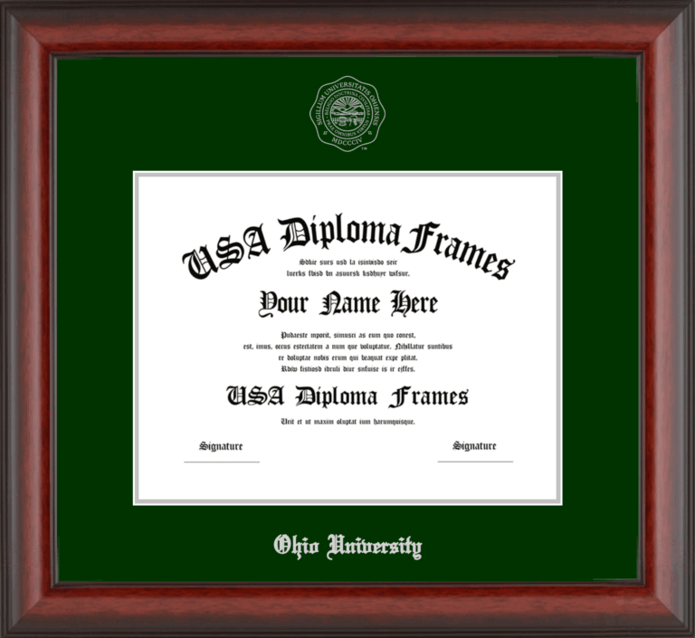 Want to explore more styles? Browse our full range of diploma frame layouts, or visit the Ohio University to view options available for your school. Looking for a fully personalized design? Try our custom Frame Builder and create a frame that’s uniquely yours.