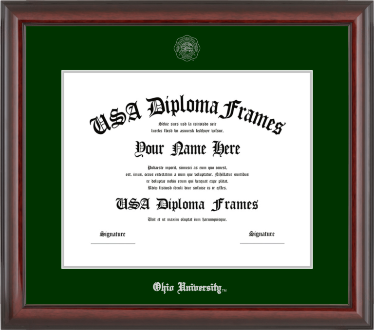 Want to explore more styles? Browse our full range of diploma frame layouts, or visit the Ohio University to view options available for your school. Looking for a fully personalized design? Try our custom Frame Builder and create a frame that’s uniquely yours.