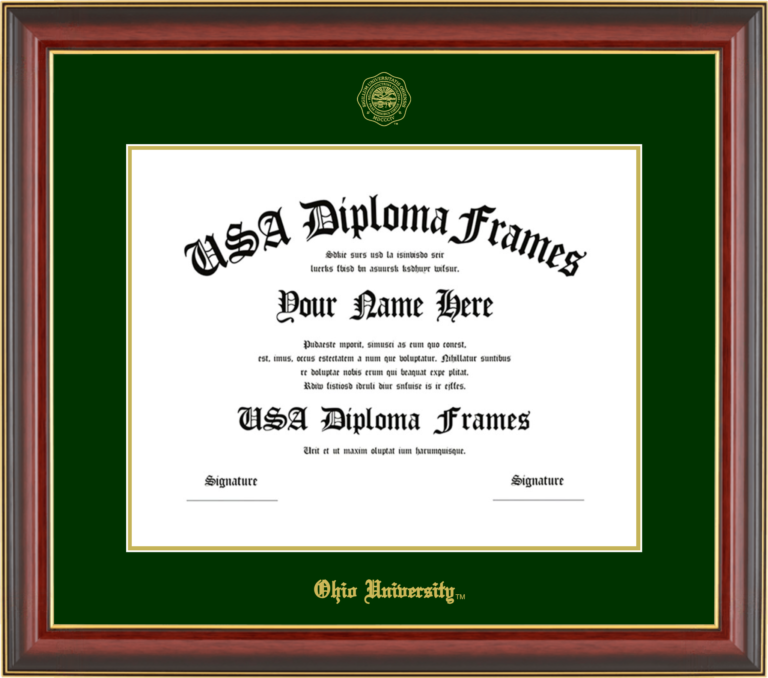 Want to explore more styles? Browse our full range of diploma frame layouts, or visit the Ohio University to view options available for your school. Looking for a fully personalized design? Try our custom Frame Builder and create a frame that’s uniquely yours.