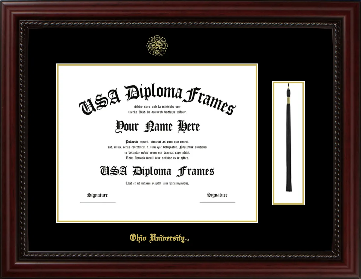 Ohio University Diploma Frame with Tassel – Executive Cherry Rope – Black and Gold Mat