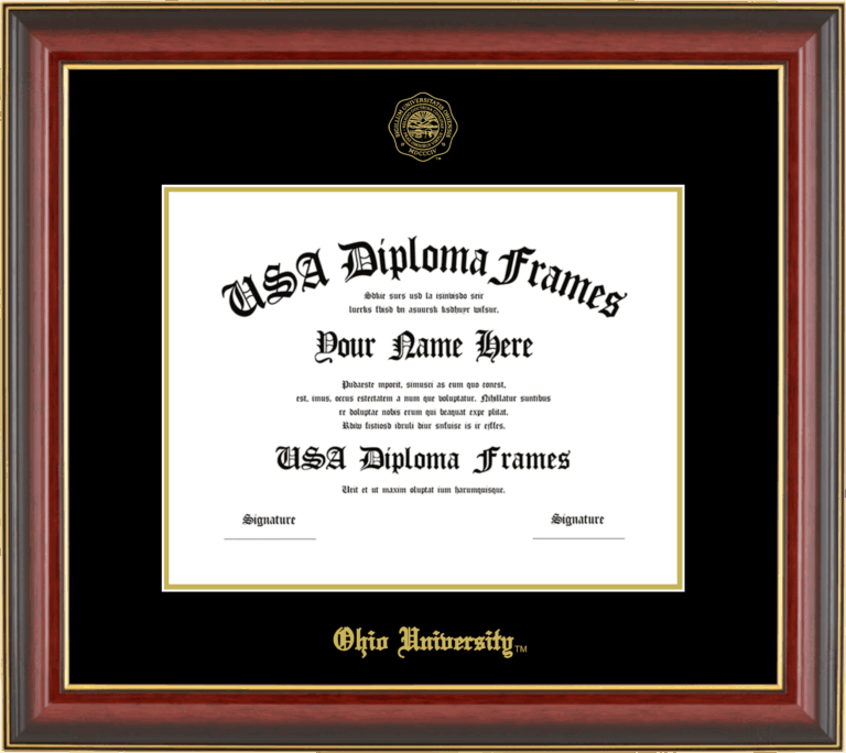 Ohio University Diploma Frame – Cherry Mahogany Gold Trim Glossy – Black and Gold Mat