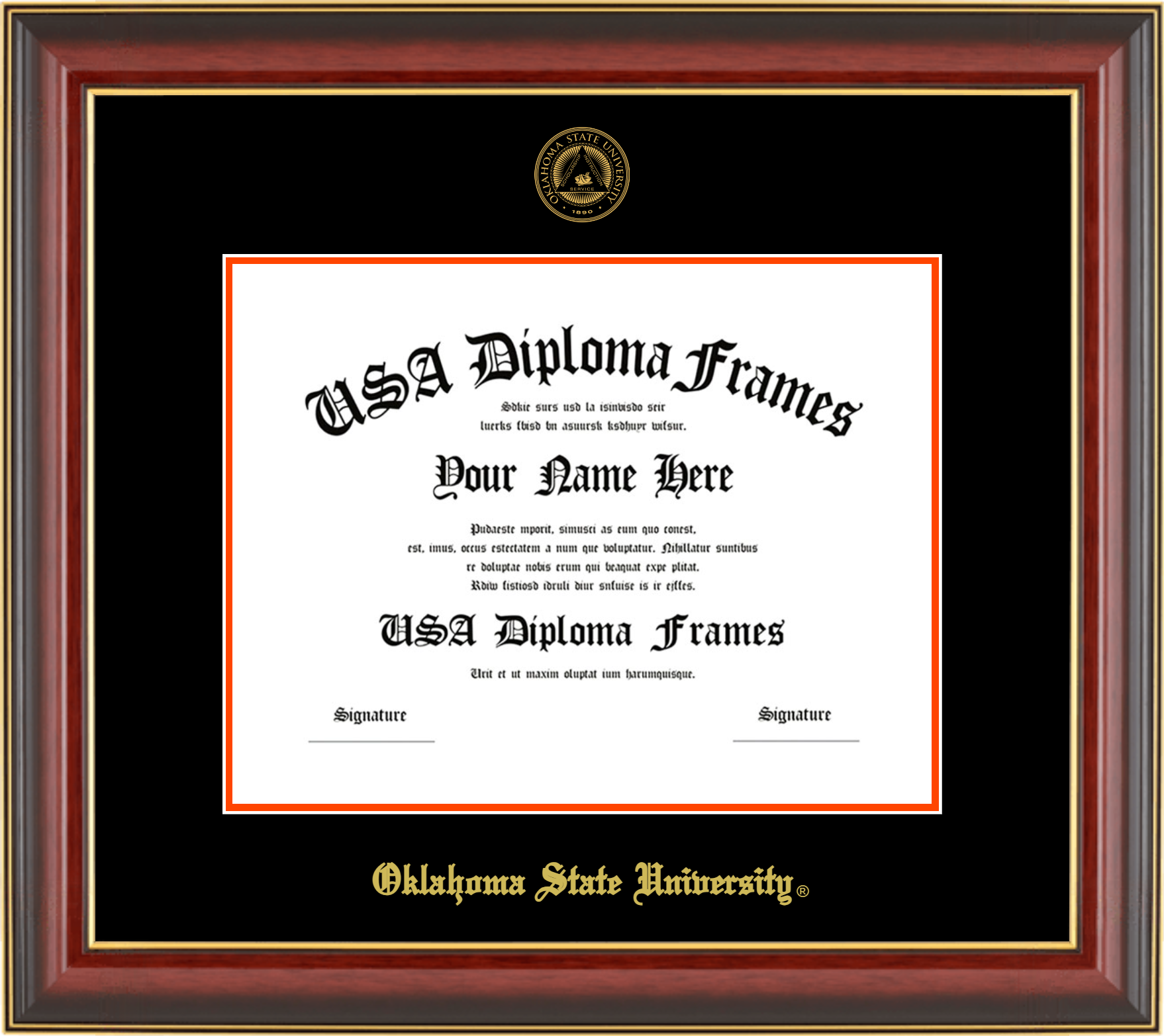 Oklahoma State University – Single Horizontal Document ( Bachelors/Masters ) – Cherry Mahogany Gold Trim Glossy – Black Mat – Orange Accent Mat – With Seal(University Seal Gold) – With Gold Embossing (Oklahoma State University)