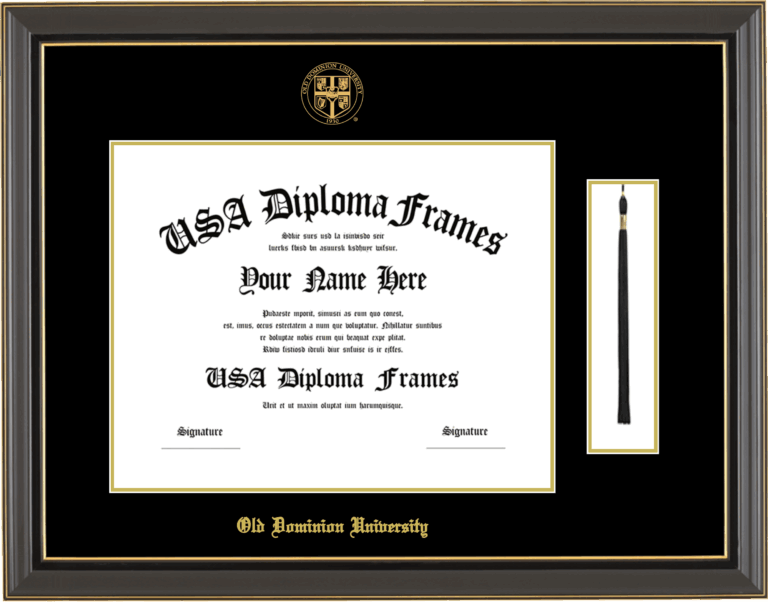 Old Dominion University Diploma Frame with Tassel – Bachelors 11 x 14 – Black Gold Trim Glossy – Black and Gold Mat