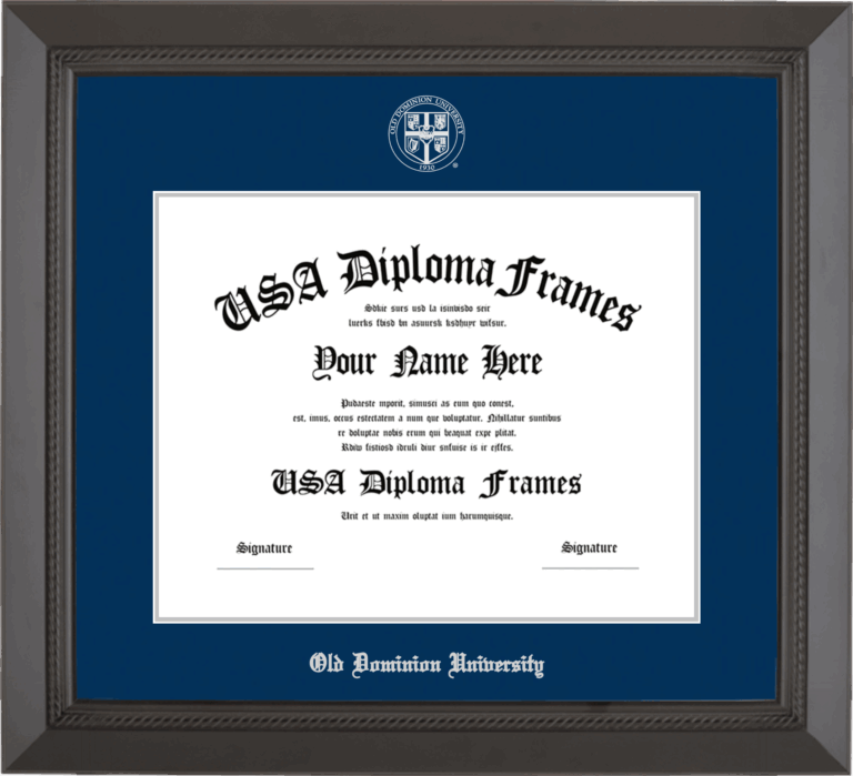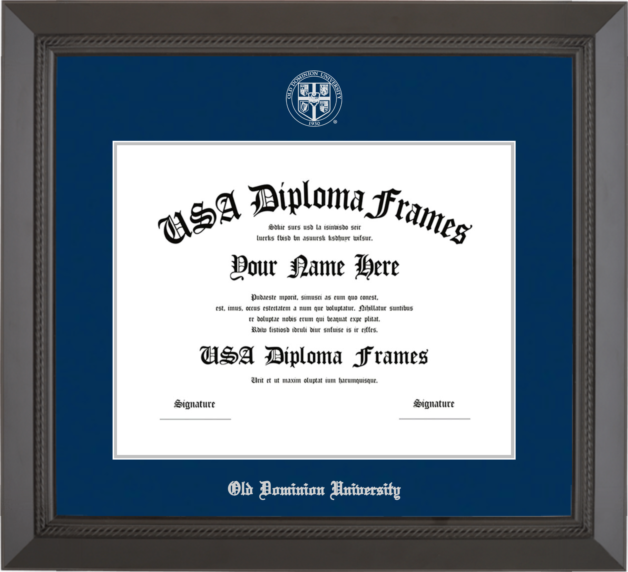 Old Dominion University Diploma Frame – Bachelors 11 x 14 – Black Rope – Navy and Silver Mat