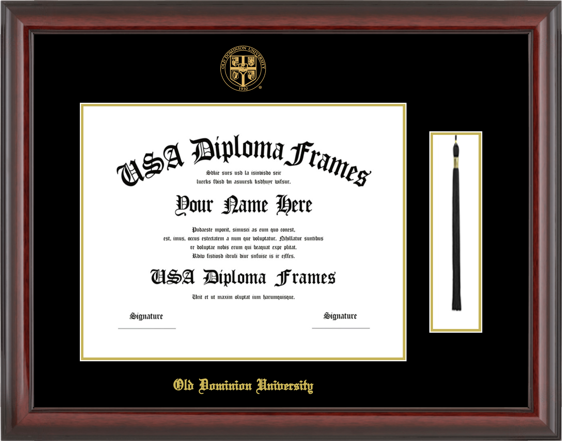 Old Dominion University Diploma Frame with Tassel – Bachelors 11 x 14 – Cherry Mahogany Glossy – Black and Gold Mat