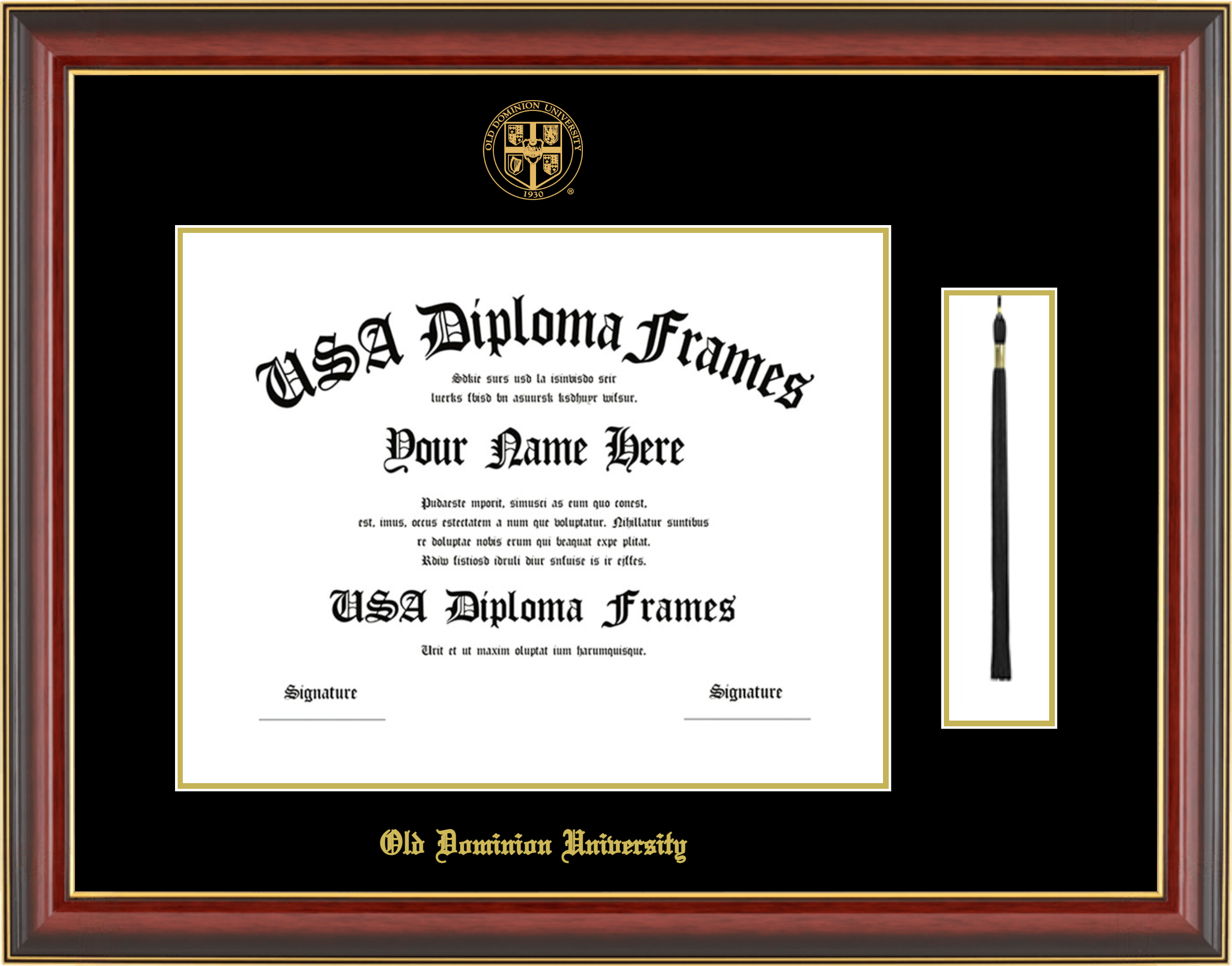 Old Dominion University Diploma Frame with Tassel – Bachelors 11 x 14 – Cherry Mahogany Gold Trim Glossy – Black and Gold Mat