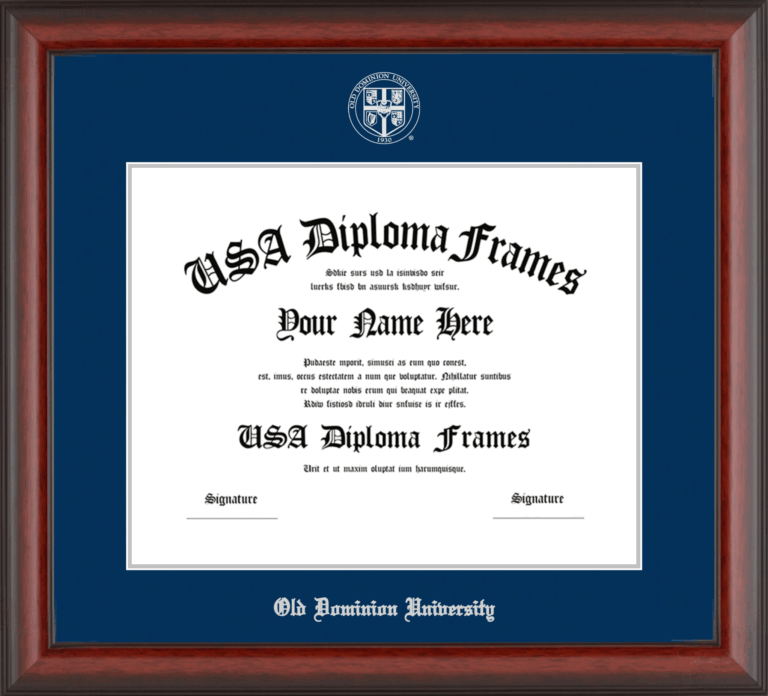 Want to explore more styles? Browse our full range of diploma frame layouts, or visit the Old Dominion University to view options available for your school. Looking for a fully personalized design? Try our custom Frame Builder and create a frame that’s uniquely yours.