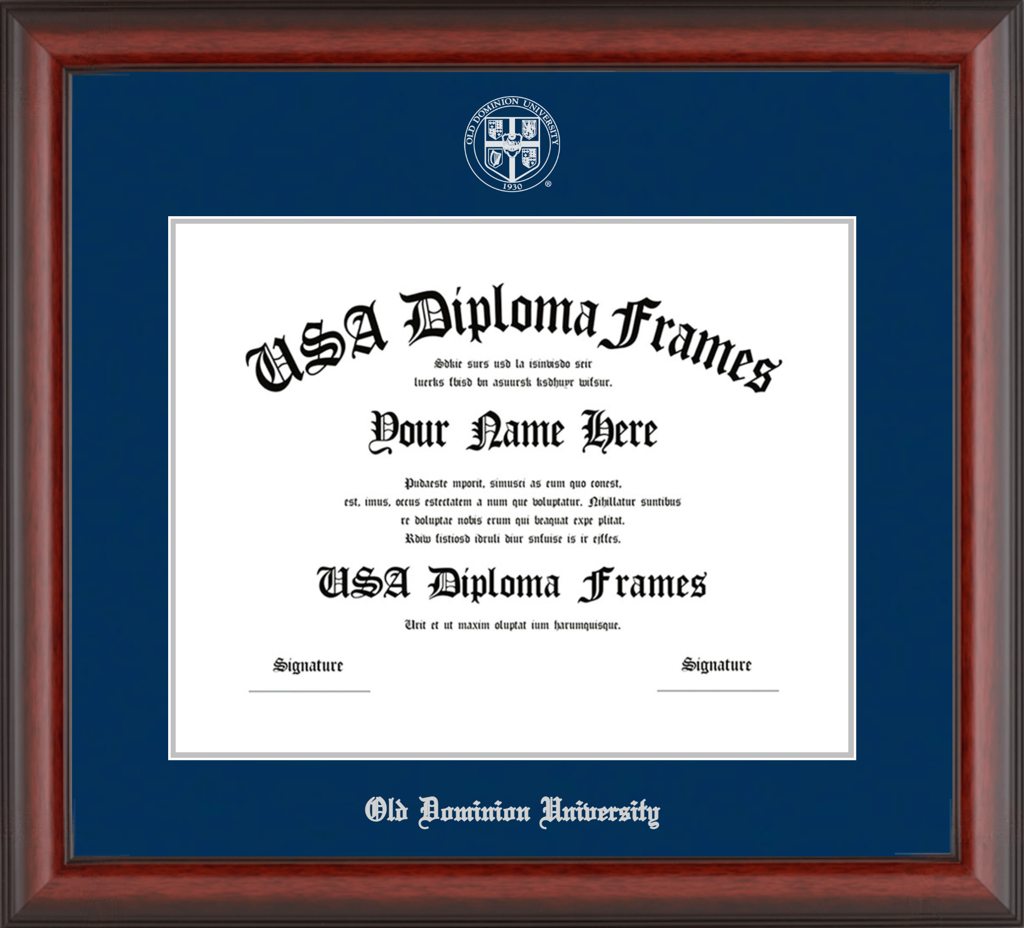 Old Dominion University Diploma Frame – Bachelors 11 x 14 – Cherry Mahogany Matte – Navy and Silver Mat
