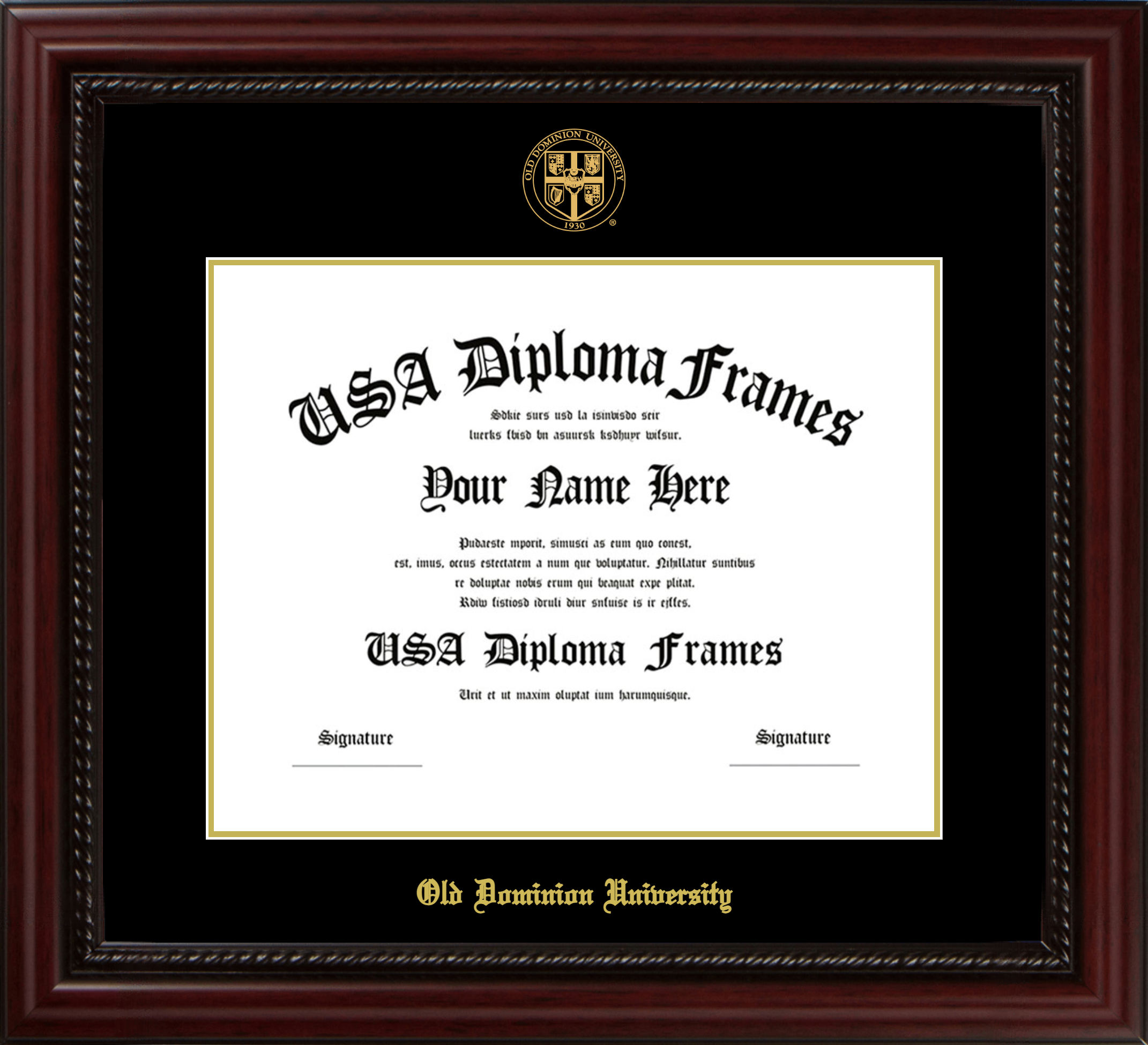 Old Dominion University Diploma Frame – Bachelors 11 x 14 – Executive Cherry Rope – Black and Gold Mat