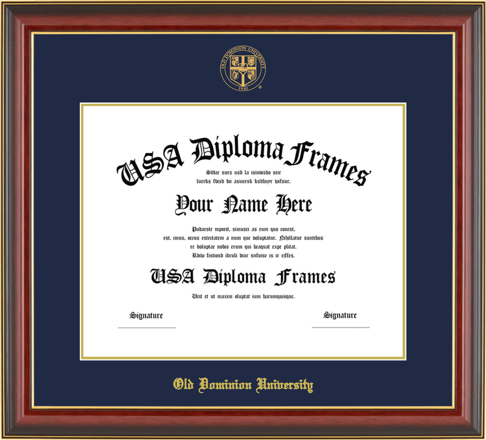 Old Dominion University – Single Horizontal Document ( Diploma ) – Cherry Mahogany Gold Trim Glossy – Navy Mat – Gold Accent Mat – With Seal(University Seal Gold) – With Gold Embossing (Old Dominion University)