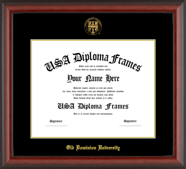 Old Dominion University Diploma Frame – Cherry Mahogany Matte – Black and Gold Mat