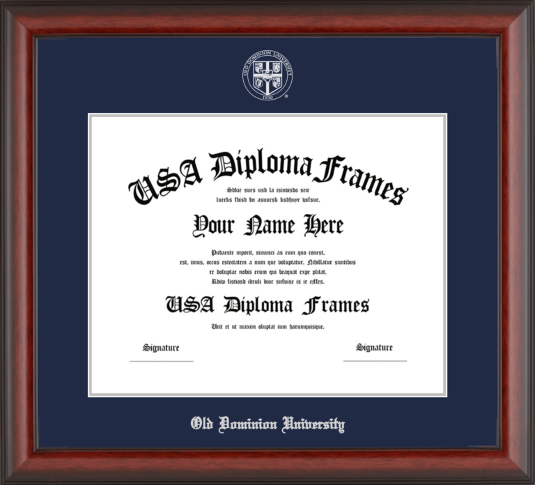 Want to explore more styles? Browse our full range of diploma frame layouts, or visit the Old Dominion University to view options available for your school. Looking for a fully personalized design? Try our custom Frame Builder and create a frame that’s uniquely yours.