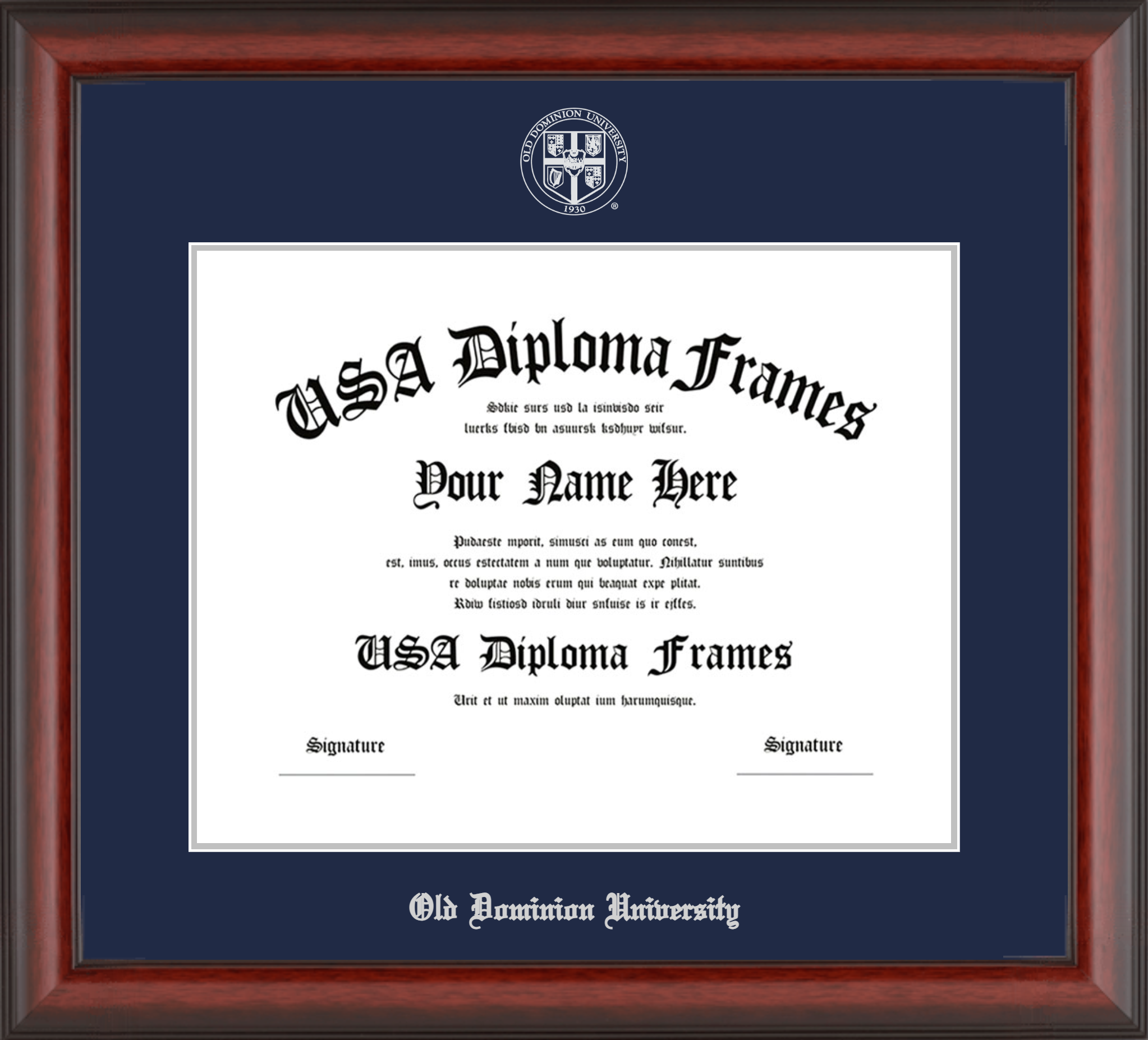 Old Dominion University – Single Horizontal Document ( Diploma ) – Cherry Mahogany Matte – Navy Mat – Silver Accent Mat – With Seal(University Seal Silver) – With Silver Embossing (Old Dominion University)