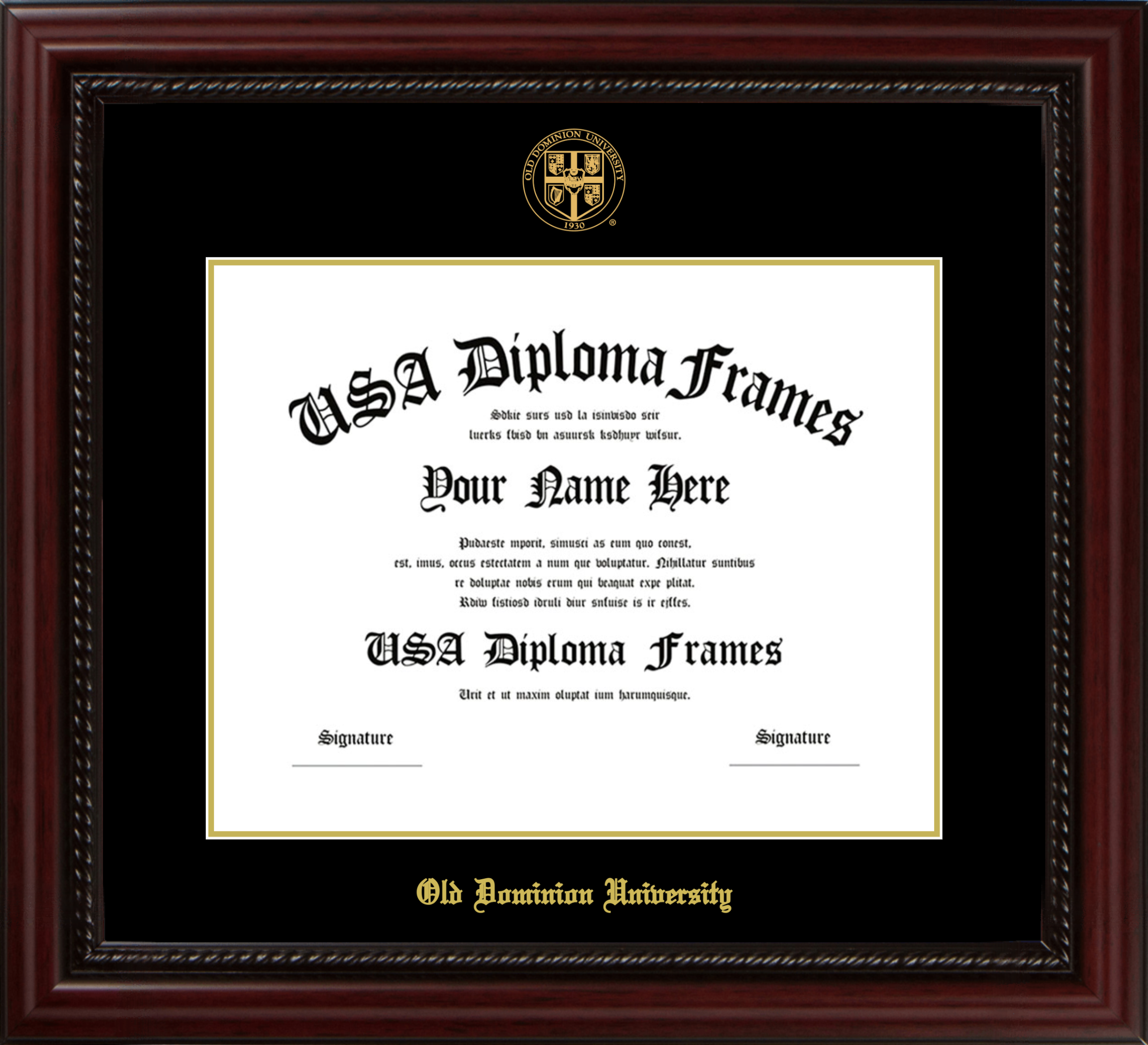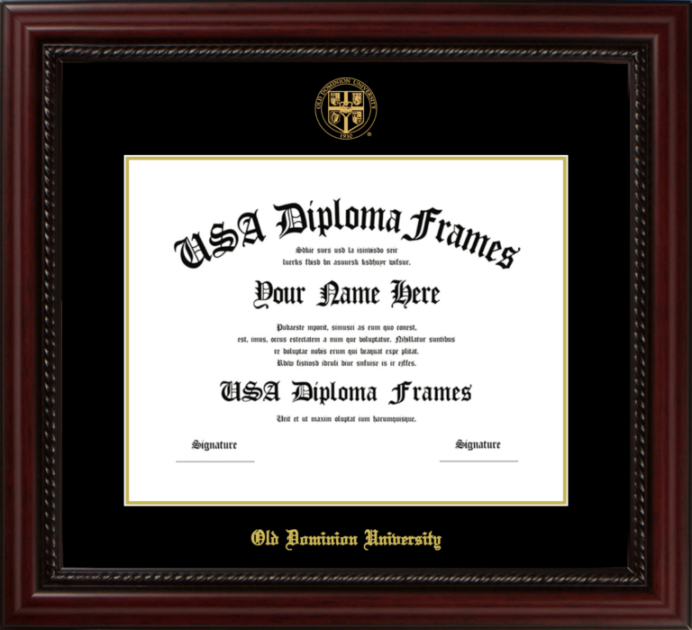 Old Dominion University Diploma Frame – Executive Cherry Rope – Black and Gold Mat