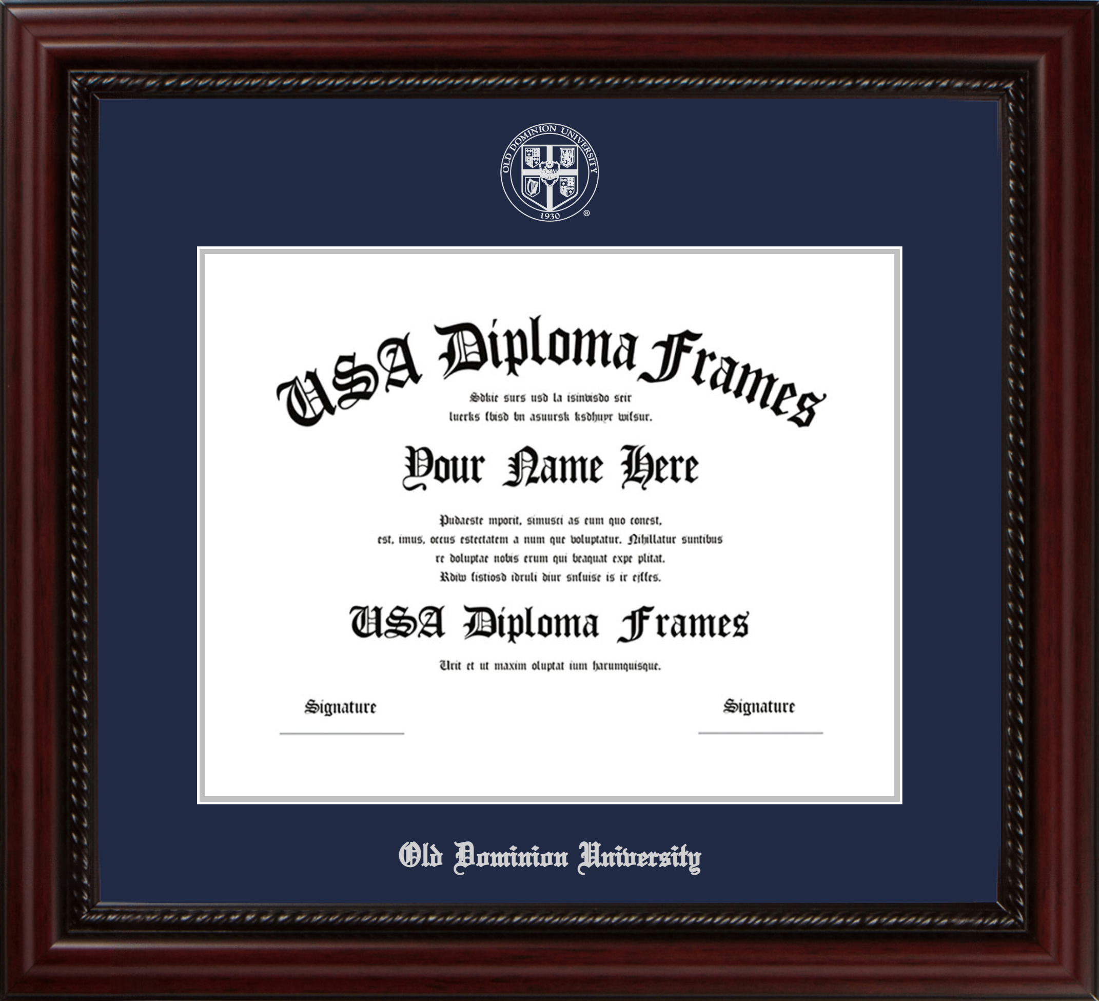Want to explore more styles? Browse our full range of diploma frame layouts, or visit the Old Dominion University to view options available for your school. Looking for a fully personalized design? Try our custom Frame Builder and create a frame that’s uniquely yours.
