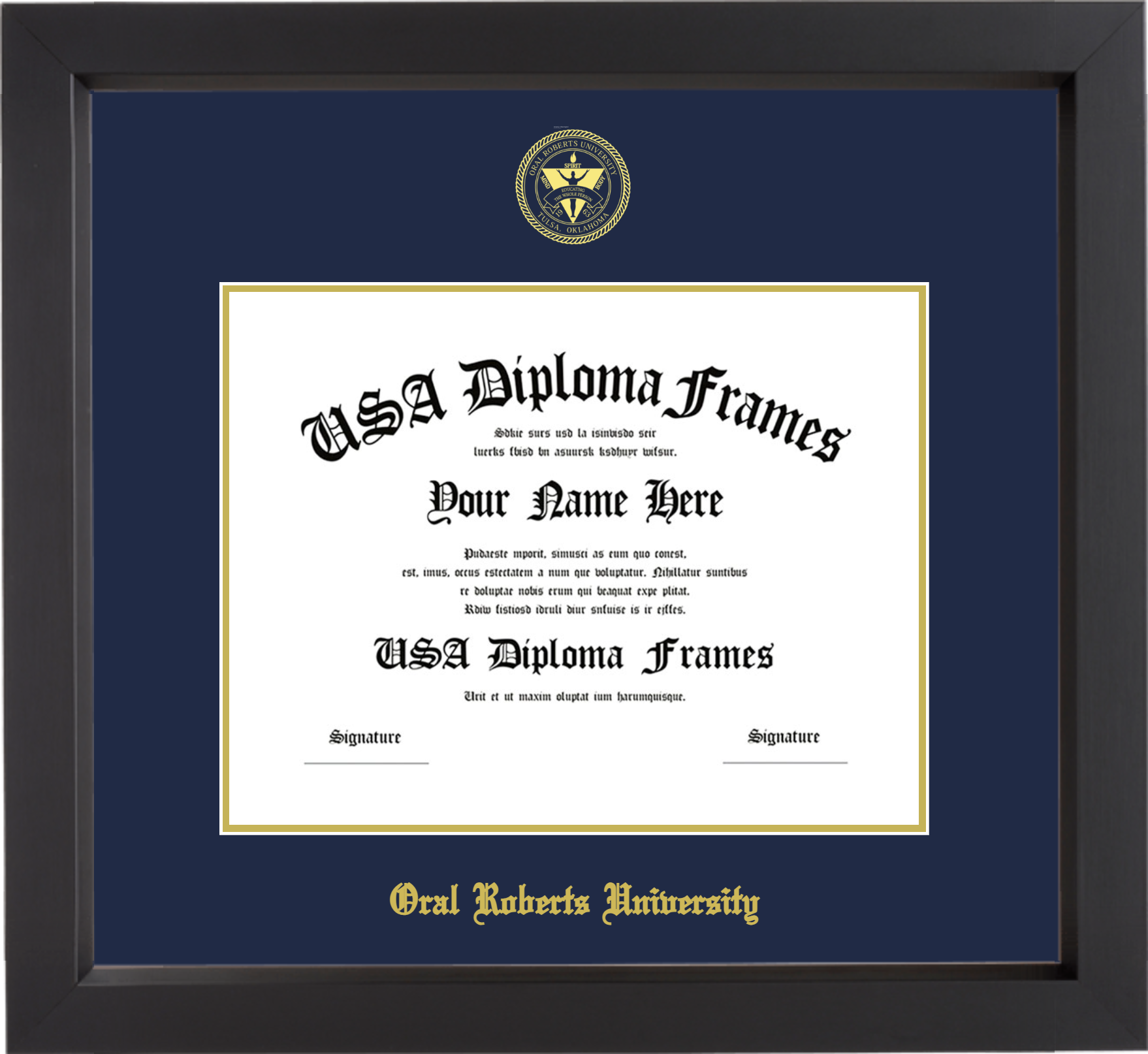 Oral Roberts University – Single Horizontal Document ( Bachelors ) – Black Matte – Navy Mat – Gold Accent Mat – With Seal(University Seal Gold) – With Gold Embossing (Oral Roberts University)